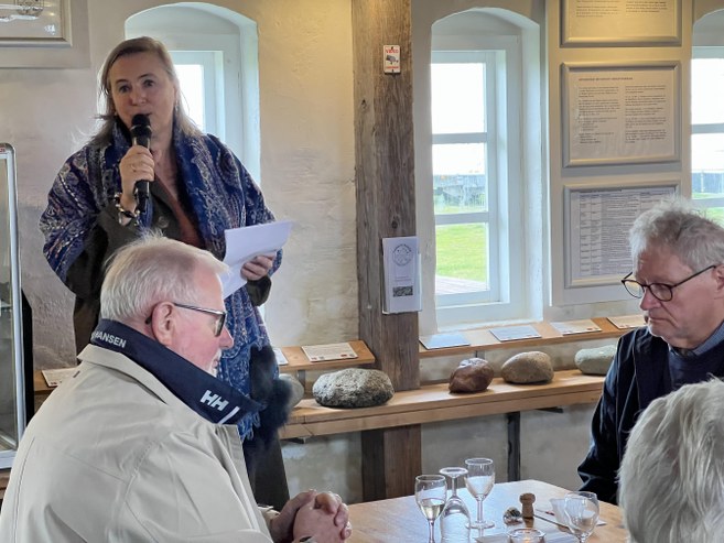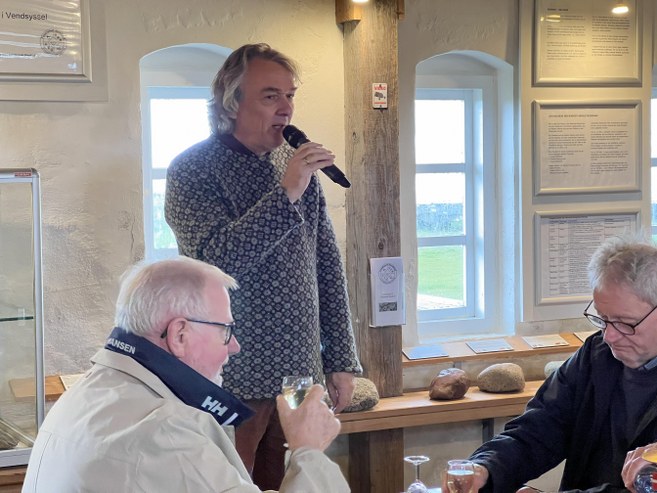 Til gengæld fik Henny Nielsen naturligvis omtalt jubilæet og takkede i den forbindelse sponsorerne for chokolade og bobler, der var stillet flot an i Madpakkerummet, før hun bød velkommen til gæsterne og kunstneren Bjarne Werner Sørensen samt Signe Højmark, som er leder leder af Kunstbygningen i Vrå.