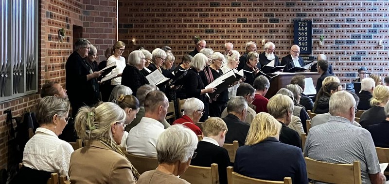 Solen skinnede, Kirkens Voksenkor sang, Lena og Peter Krogh leverede musikken og konfirmander havde både bagt brød og lavet saft til nadveren, skrevet bønner og hjalp med praktiske opgaver til søndagens høstgudstjeneste i Emmersbæk Kirke.