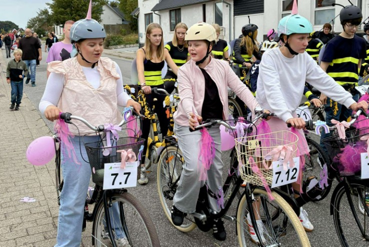 Udenfor var der ligeledes masser at opleve. Et cykelløb med udklædte elever fra Friskolen var et stort trækplaster, og mange tilskuere var mødt op for at heppe på de kreative ryttere.