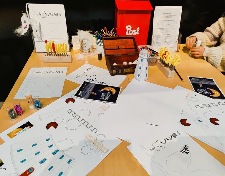 Publikum dumper ind i fortællingen lige der, hvor Gabriel keder sig allermest… Intet kan muntre ham op, en nisse stjæler månen i protest over, at Gabriel og hans mor slet ikke skal fejre jul herude ved kysten i Fyrtårnet, som jo skal passes til punkt og prikke…og ingen jul er jo én ting, men forestil dig, at månen pludseligt forsvandt fra nattehimlen… den slags skal man ikke spøge med, men heldigvis er overraskelsernes tid ikke forbi…