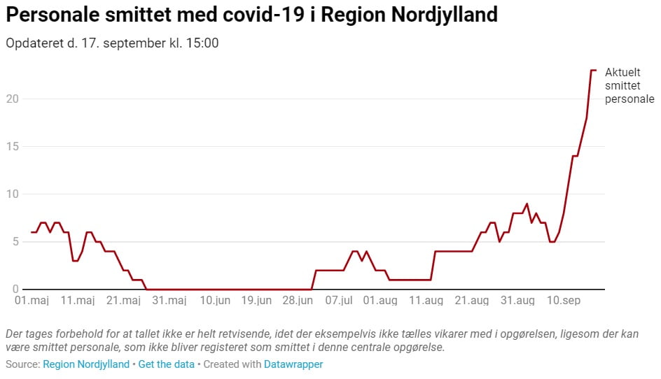 På otte dage er antallet af smittet personale i Region Nordjylland mere end firedoblet.