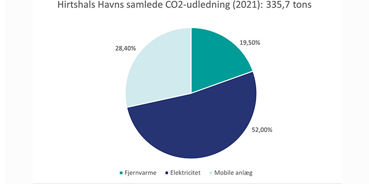 Hirtshals Havns CO2-udledning i 2021 var på i alt 335,7 tons og fordeler sig således: