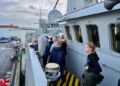 Det var to af Søværnets ansatte, nemlig Line og Jesper, der tog alle børnene og tre lærere samt karrierelæringsvejleder Lene Peilicke med rundt på Flådestationen.
