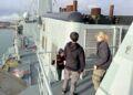 Undervejs fik alle en rundvisning ombord på inspektionsskibet Hvidbjørn, som ikke synede af så meget ved siden af Absalon. Skibet virkede dog noget større under rundvisningen.