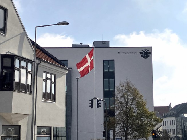 Dannebrog vajer ved rådhuset i Hjørring. Foto (arkiv): Palle W. Nielsen