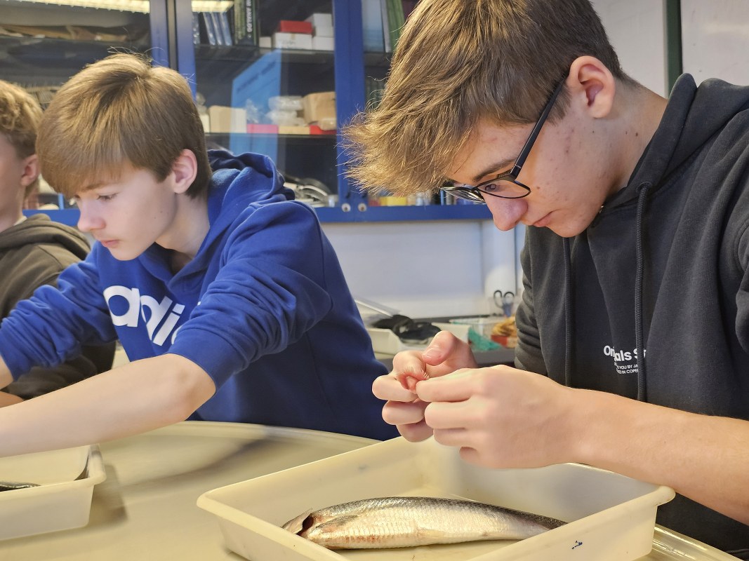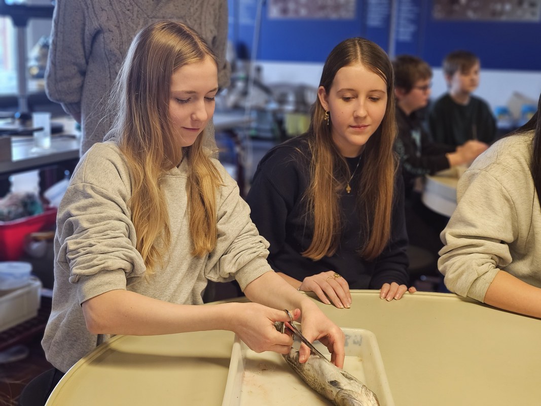 Derefter fortsatte dagen i Nordsøen Oceanarium. Her rykkede eleverne først ind i Skoletjenestens vådlaboratorie, hvor de selv skulle i gang med saks og mikroskop for blandt andet at lære om, hvordan sild og torsk ser ud indeni, og hvordan de lever.