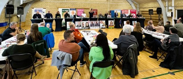 Søndag afholdt SHI valgdebat i Højene Hallen. Ikke færre end 13 politiske partier og lister var repræsenteret, herunder tre borgmesterkandidater, nemlig Søren Smalbro (V), Maj-Britt Beith (S) og Per Møller (C).