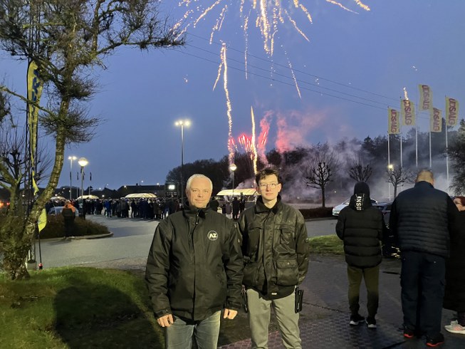 Varehuset har også i år den flotte udstilling og udlevering af fyrværkeri i lagerbygningen på den anden side parkeringspladsen, hvor blandt andre Kristian og Alexander er klar til at udlevere.