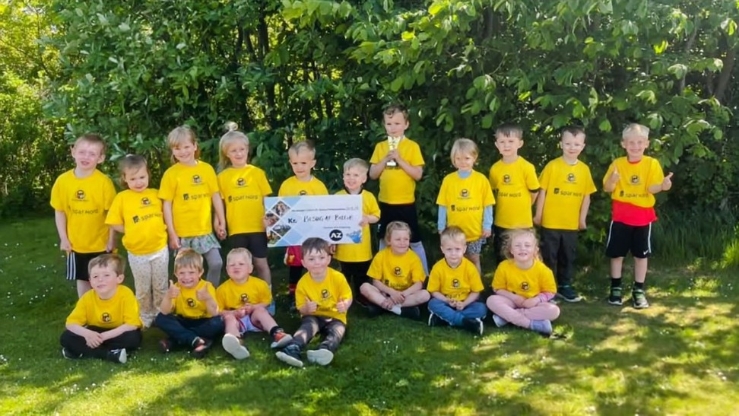 * A-Z Hjørring udstyrede alle børn med en drikkedunk og gav vinderinstitutionen et besøg af den populære maskot Billie.