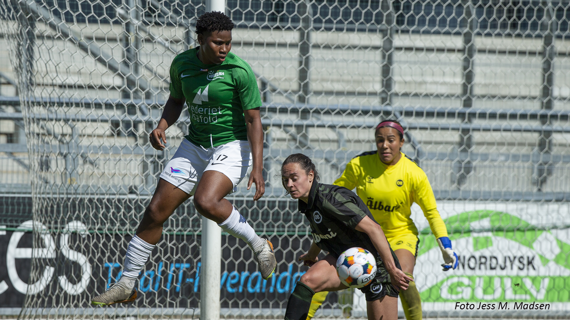 Efter yderligere 8 minutter var Fortunas topscorer Joy Omewa dog på pletten og udlignede til 1-1. Med det mål er Joy Omewa nu oppe på 17 scoringer.