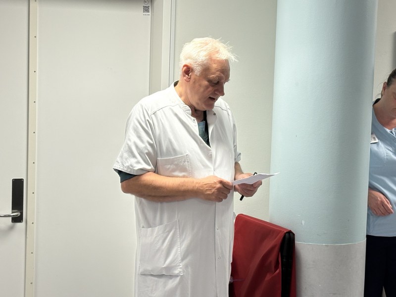 Cheflæge på Mave- og Tarmkirurgisk Afdeling Frank Svendsen Jensen holdt indvielsestale, hvor Niels Hausgaard blev citeret med ordene: