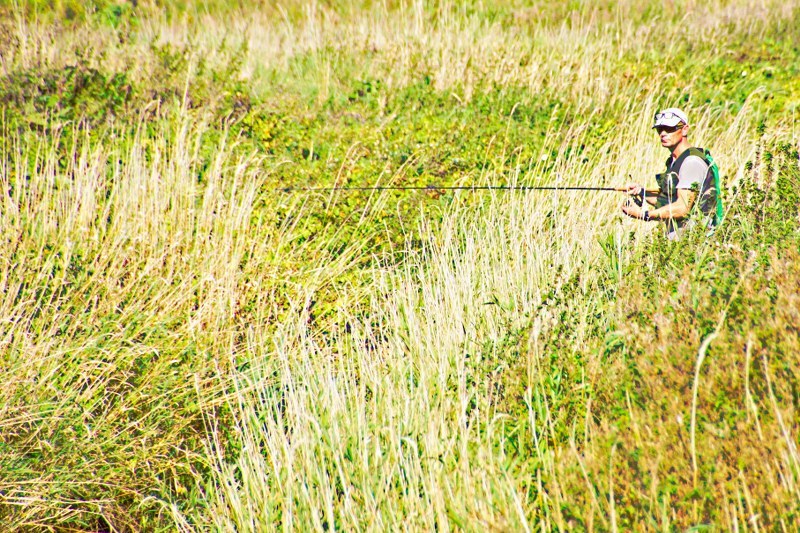 Fiskene – for de er der – gemmer sig nemlig i det lave langsomt strømmende vand og er ikke sådan lige at lokke ud af huller og huler…