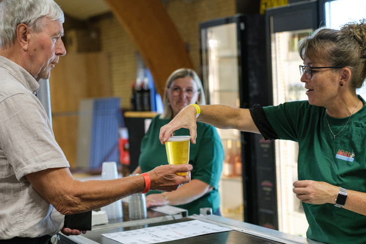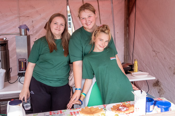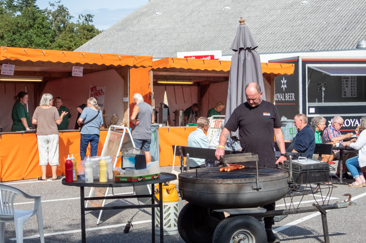 Uden for hallen er der opsat borde og bænke, hvor man kan nyde friskbagte vafler, herlige grillpølser og skummende frisk kold fadøl.