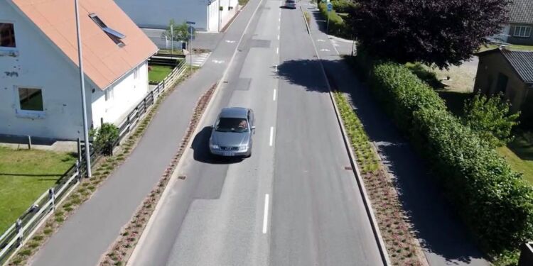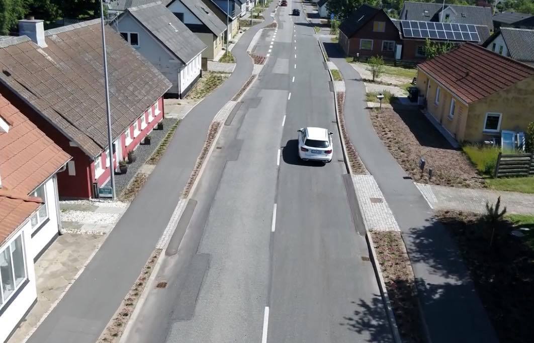 Nu er fortove og cykelstier væk, mens den nye fællessti for både cykler og fodgængere slynger sig mellem vejkanten og husene i Sønder Rubjerg. Der er plantet flotte blomster på begge sider af den snoede sti, så man har genskabt forhaverne og givet byen en klar og unik identitet.