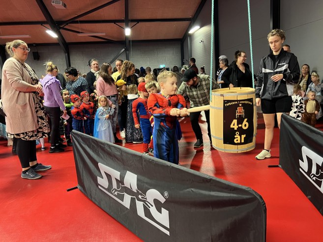 Indenfor var der først dans for yderligere at få humøret tunet ind på tøndeslagningen, hvor børnene blev delt ind efter alder, hvorefter der i dén grad blev slået til de slikfyldte tønder.