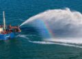 Sandfodringen fortsætter i år kystnært, hvor et særligt sandsugerskib pumper sandet ud over stævnen på ca. 6 meters vanddybde og dermed udlægger sand på revlen. På billederne er det skibet Magni R fra Rohde Nielsen.