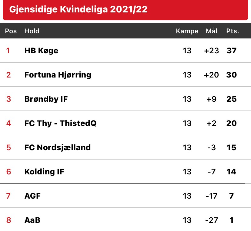 Om disse cifre holder grundspillet ud afgøres i sidste runde, hvor Fortuna på søndag den 21. november kl. 11:30 møder Brøndby IF på Nord Energi Arena i Hjørring. HB Køge skal en tur til Farum og møde ligaen nr. 5 FC Nordsjælland.