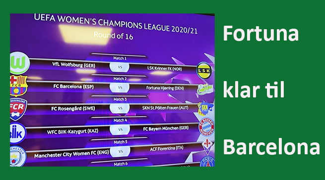Fortuna skal i det første opgør på udebane. Det bliver nok ikke på Camp Nou, men helt sikkert et andet fornemt stadion i Barcelona, der lægges ud på den 3. eller 4. marts.