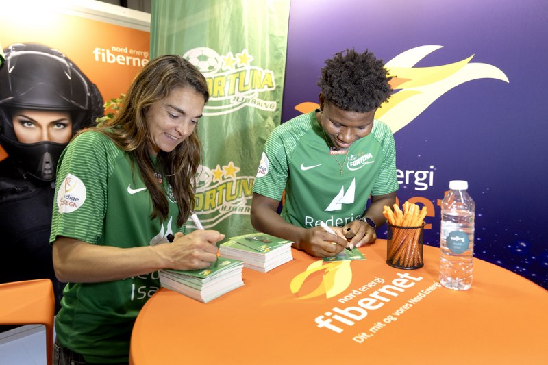 Lørdag var det altså Fortunas topscorer Joy Omewa og den yderst rutinerede Janelle Cordia, der sørgede for glødende autografpenne.