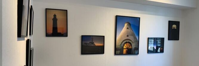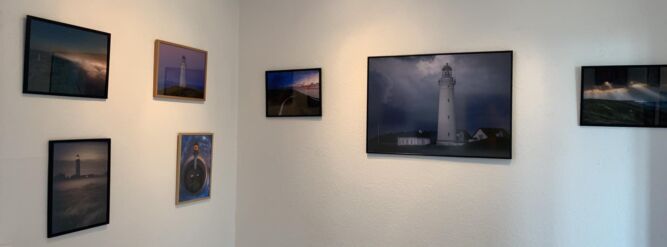 Hele søndagen har den skalpelskarpe og kreative fotograf nemlig knoklet med prioritering og ophængning, hvilket gav sved på panden, fordi mange nysgerrige valgte allerede i dag at kigge indenfor til en snak, da døren stod åben.