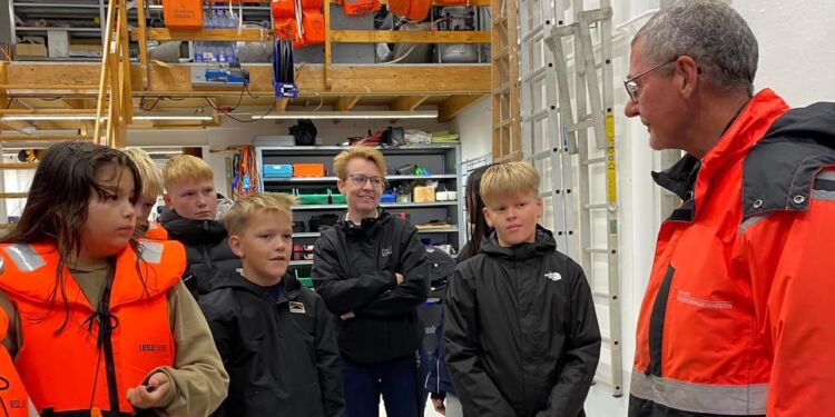 Eleverne fik en rundvisning på redningsstation, hvor der blev spurgt ivrigt ind til redningsfolkenes arbejde. Måske er der ligefrem nogle kommende redningsfolk blandt eleverne. Man har da lov at håbe.