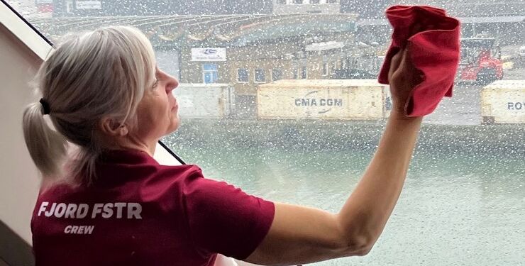 Fjord Lines hurtigfærge FSTR var senest den 10. december i Hirtshals Havn. Efterfølgende sejlede den til Frederikshavn, men nu er den igen hjemme i Hirtshals Havn. Her arbejdes der hårdt for, at skibet er helt klar til sæsonstart den 1. april, hvor den bliver indsat i rutefart mellem Hirtshals og Kristiansand.