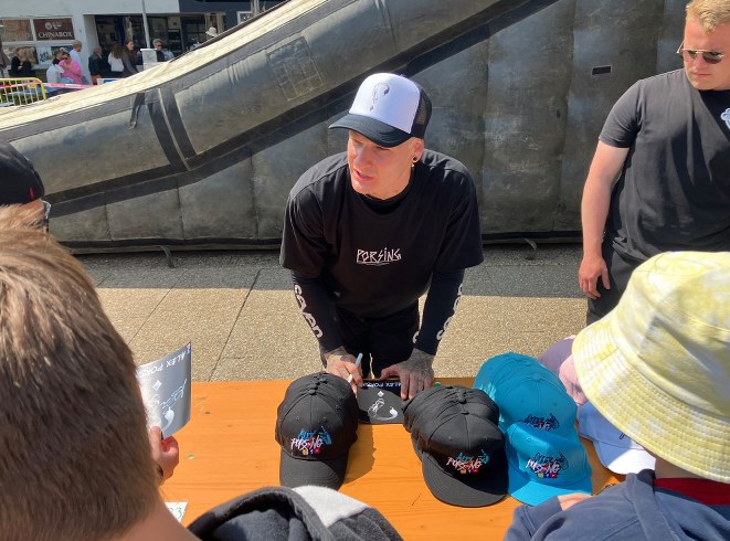 Det var en rigtig godt indslag i byfesten, og mesteren skrev autografer og fortalte gerne om at have mod på livet og sætte fut i adrenalinen. Det var som lovet action med inspiration.