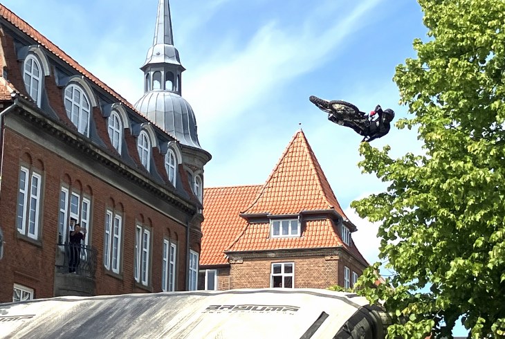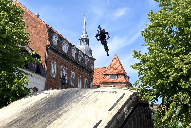 Der kom rigtig mange mennesker specielt fredag for blandt andet at opleve Alex Rune Porsing, danmarksmesteren i motocross, i aktion. Han fløj på sin motorcykel som en let fugl over et stykke af Østergade, og det gav et sus i publikum hver gang, han gassede op og lavede utrolige stunts i luften, før han længere nede ad gågaden landede sikkert klar til næste tur.