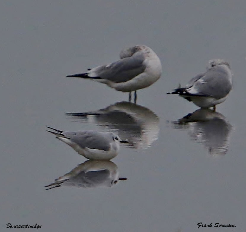 Lokale Lars Pedersen fandt 1. december en bonapartemåge på Hirtshals Øststrand. Flere fuglekiggere kom til, og senere blev den set inde i havnen. Det er kun syvende fund i Danmark af den amerikanske gæst, og det er fjerde fund i Hirtshals. Arten ligner hættemågen, men er mindre og har et lille sort næb og andre undervingetegninger. På Henrik Pedersens foto af den flyvende fugl ses vingetegningerne, og på Frank Abildgaard Sørensens foto af en stående fugl ses, hvor lille mågen er. Det er verdens tredje-mindste mågeart.