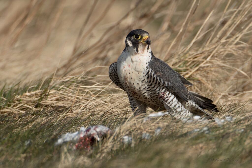 Forårstrækket af rovfugle over NV-Vendsyssel var ikke begunstiget af østlige vinde, som ellers er det optimale, men det blev da til sjældnere arter som aftenfalk, steppehøg, kongeørn og sort glente. Naturfotografen Henrik Pedersen traf ved Horne en vandrefalk, der havde fanget en tamdue.