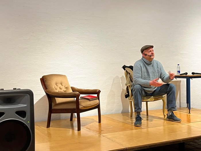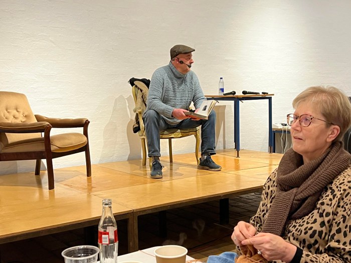 Derefter kom Mads Nygaard og fortalte levende og fornøjeligt historien om Slukøjet alias fiskeren Knud. Derefter berettede han om Ali og solaf. Det er Mads bare god til, og planen var kun en historie, men det blev altså til tre stykker.