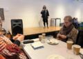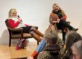 Endelig var der lækker buffet med salat, ris og gryderet med kylling og grøntsager. Så lækkert! Dernæst Tine Gøtzsche og Christine Feldthaus. Trine interviewede Christine, hvilket begyndte virkelig sjovt og forsatte i den hylemorsomme boldgade.