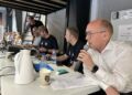Placeret mellem landsholdstræner Nikolaj Saabye og speaker Bent Kongerslev havde jeg i dag alle forudsætninger for en spændende oplevelse til finalekampen mellem Hjørring Futsal Klub (HFK) og Gentofte.