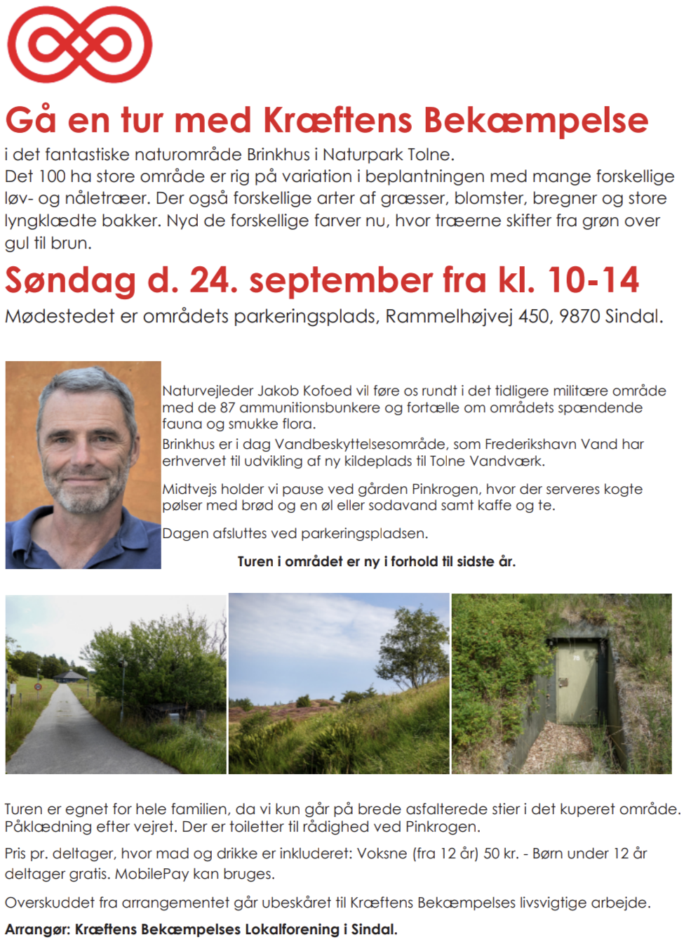 Kræftens Bekæmpelses Lokalforening i Sindal inviterer alle, børn, vokse, unge og ældre som sagt hele familien, til en fantastisk gåtur i det smukke naturområde Brinkhus i Naturpark Tolne med naturvejleder Jakob Kofoed som guide.