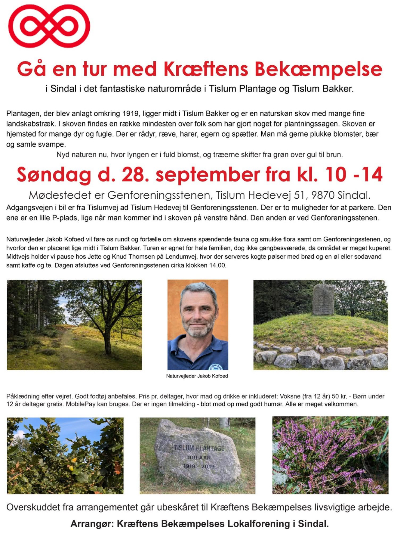 Du er inviteret til “Gå en Tur med Kræftens Bekæmpelse” i Sindal søndag den 28. september i det fantastiske naturområde i Tislum Plantage og Tislum Bakker.