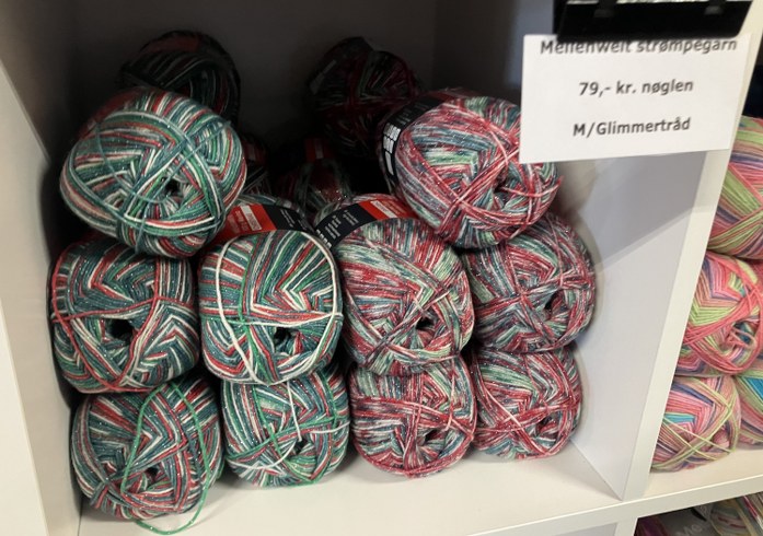 – Julen banker på, så der er nu flere forskellige former for strømpegarn blandt andet med glitter, og der skal kun bruges én nøgle til et par strømper. En god og farverig julegave-idé, siger Doris Christensen, der har åbent bag den delvise vejspærring på Vandværksvej tirsdag og onsdag klokken 10-18.