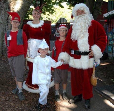 Her har Jakob Gislund hele familien med på job som Julemand. Foto: Privat.