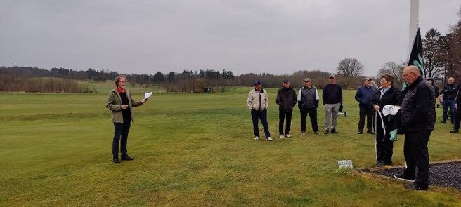 Ikke færre end 87 golfspillere havde valgt at trodse det underfundige aprilvejr og havde fundet vej til golfklubben, hvor vi kl. 9.00 begyndte med standerhejsning og tale ved formand Niels P. Konnerup.