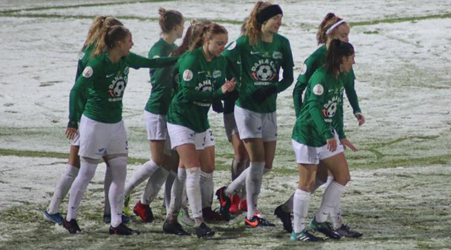 Holdene skulle lige se hinanden an, og spillerne skulle vænne sig til den snebelagte bane, som var en udfordring. Fortunas elegante boldspillere fandt først melodien, men der skulle alligevel gå 45 minutter inden en scoring. Det var den 23-årige amerikaner Machaela George, der i 1. halvleg aller sidste sekunder bragte Fortuna foran.