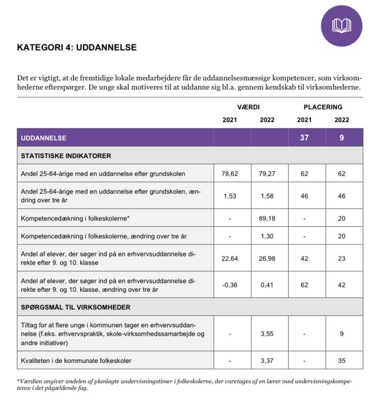 Samlet set ligger Hjørring på plads nr. 37, hvor kommunen i 2021 lå nr. 46, hvilket altså betyder en forbedring på 9 pladser. Et af de emner, hvor man lokalt gør det særligt godt, er netop på uddannelse påpeger Gry Bruun Nielsen.