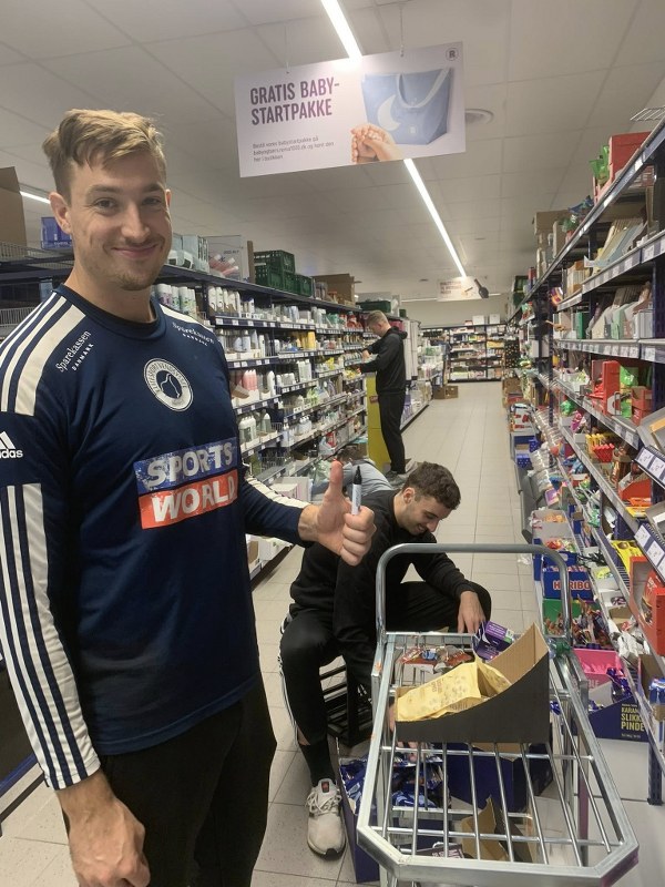 Håndboldspillere på job hos Rema 1000 i Hirtshals
