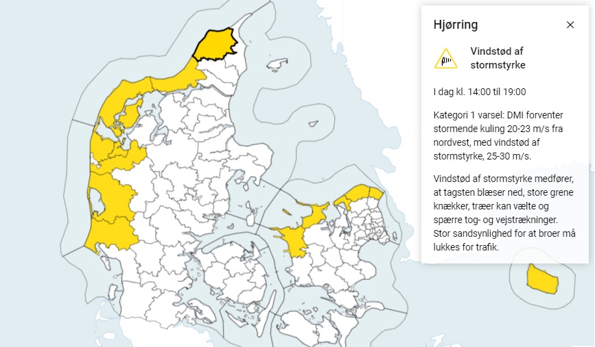 Som følge af den kraftige blæst, er der udsendt et DMI-varsel, som kan ses nedenfor.