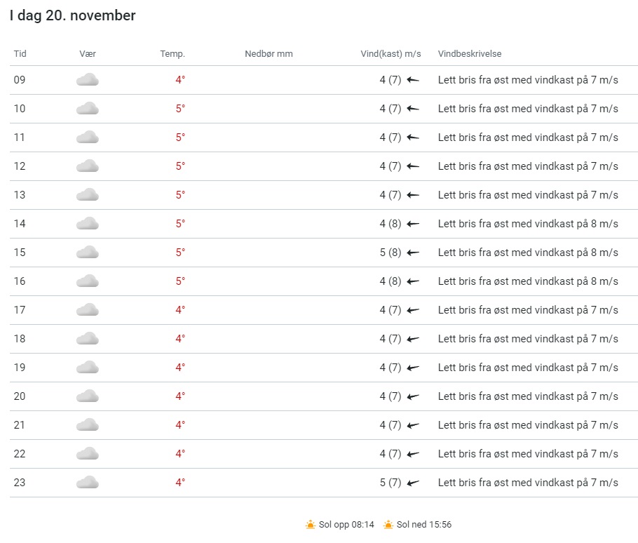Mandagens vejr i og omkring Hirtshals ifølge YR.NO.