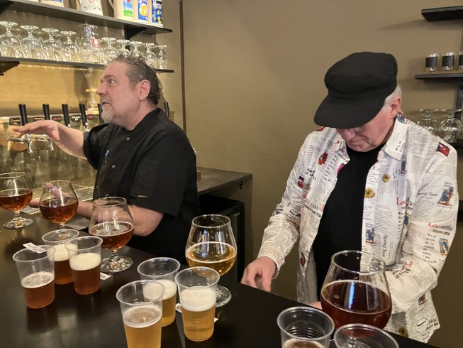 Fest var der også lørdag, hvor de to ejere sammen med friske hjælpere havde travlt med at servere smagsprøver på 13 af husets øl.