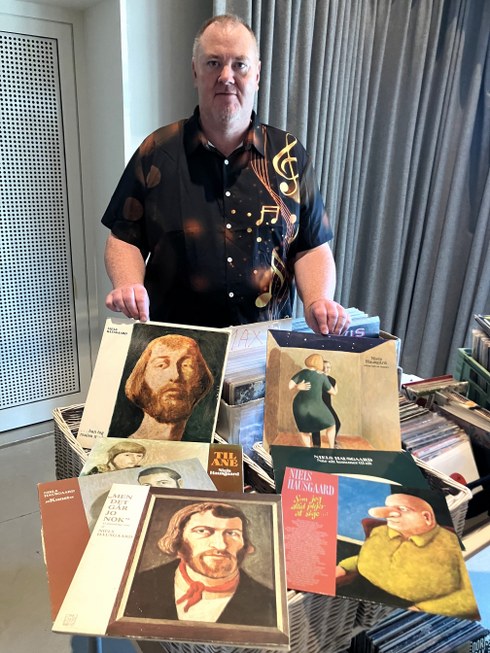 Pladebasaren fandt sted på den dag, hvor vendelboen Niels Hausgaard rundede 80 år En del af hans imponerende liste af udgivne plader var til salg – renset og pæne og klar til at spille videre – præcis som Niels Hausgaard gør.