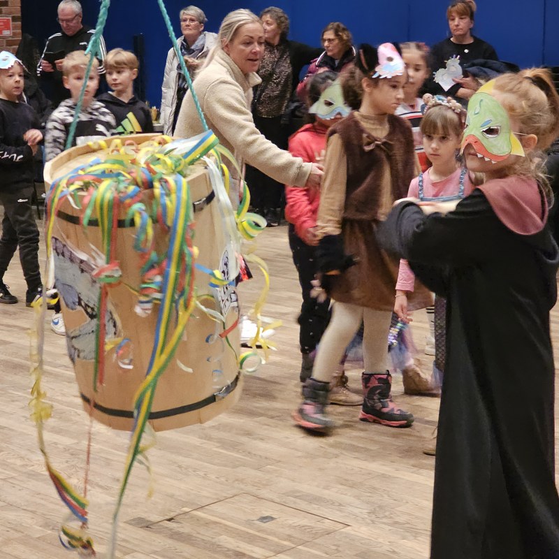 Børnene startede i det kreative hjørne, hvor de pyntede fastelavnstønder og klippede og dekorerede deres egne fine masker.