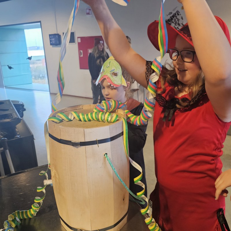 Her var 62 elever fra anden årgang hos Hirtshals Skolecenter nemlig på besøg for at fejre fastelavn sammen med Nordsøen Oceanariums Skoletjeneste.