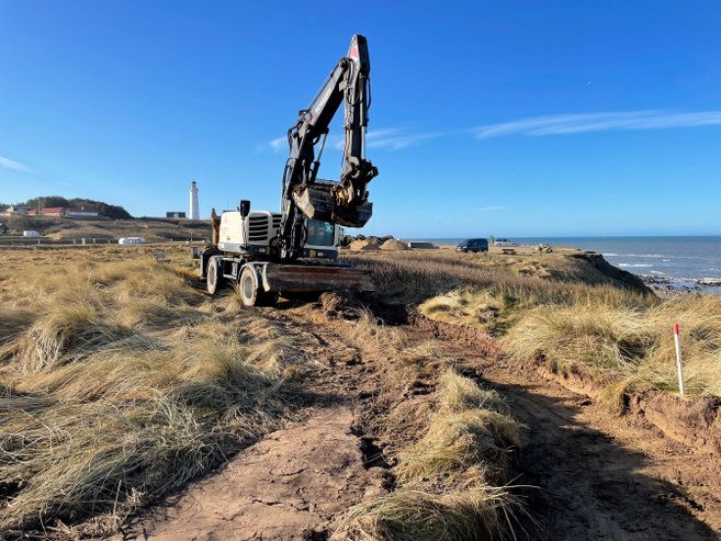 Rutemarkeringspæle, infotavler og opholdspladser med Daumillers Hirtshals Bænke/Borde etableres også langs stiforløbet i løbet af foråret.