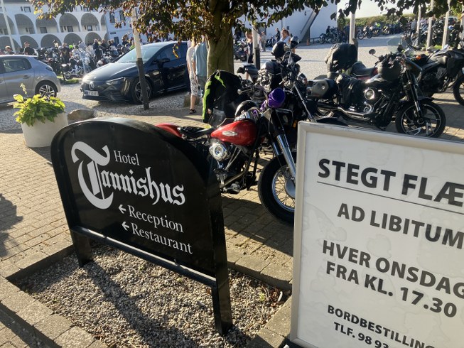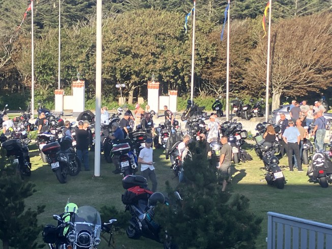 Det er også altid en god ekstra oplevelse også for områdets turister. NordsøPostens udsendte fik således en sludder med et par fra det midtjyske, som var på en vandretur langs vestkysten med arrangeret overnatning forskellige steder på ruten – og denne aften med underholdning af motorcykler på Hotel Tannishus i Tversted.