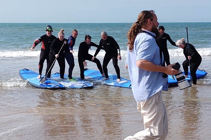 Fredag var holdet imidlertid igen samlet og denne gang til et fotoshoot på Husmoderstranden med fotograf Jesper Fosdal. Her boltrede de sig med paddle boards hos Surf og Natur. Ifølge nogle af de tilstedeværende fortjener fotografen da også ros for sin store tålmodighed.